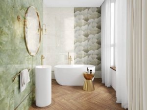 Kolekcja Biloba to połączenie naturalnej harmonii z nowoczesnym wzornictwem. Inspiracją dla serii stał się liść miłorzębu – symbol długowieczności, równowagi i spokoju. Delikatny motyw roślinny nadaje ceramice lekkości, a jednocześnie podkreśla jej wyrafinowany charakter.